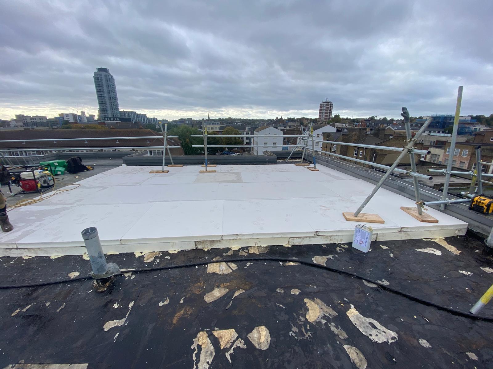 We carried out a full strip back to the existing vapour control layer, then installed a new cut-to-fall insulation scheme, fully adhered with a high-performance Fatra single ply membrane. Our team managed the entire process, including scaffolding, health and safety compliance, and waste removal.