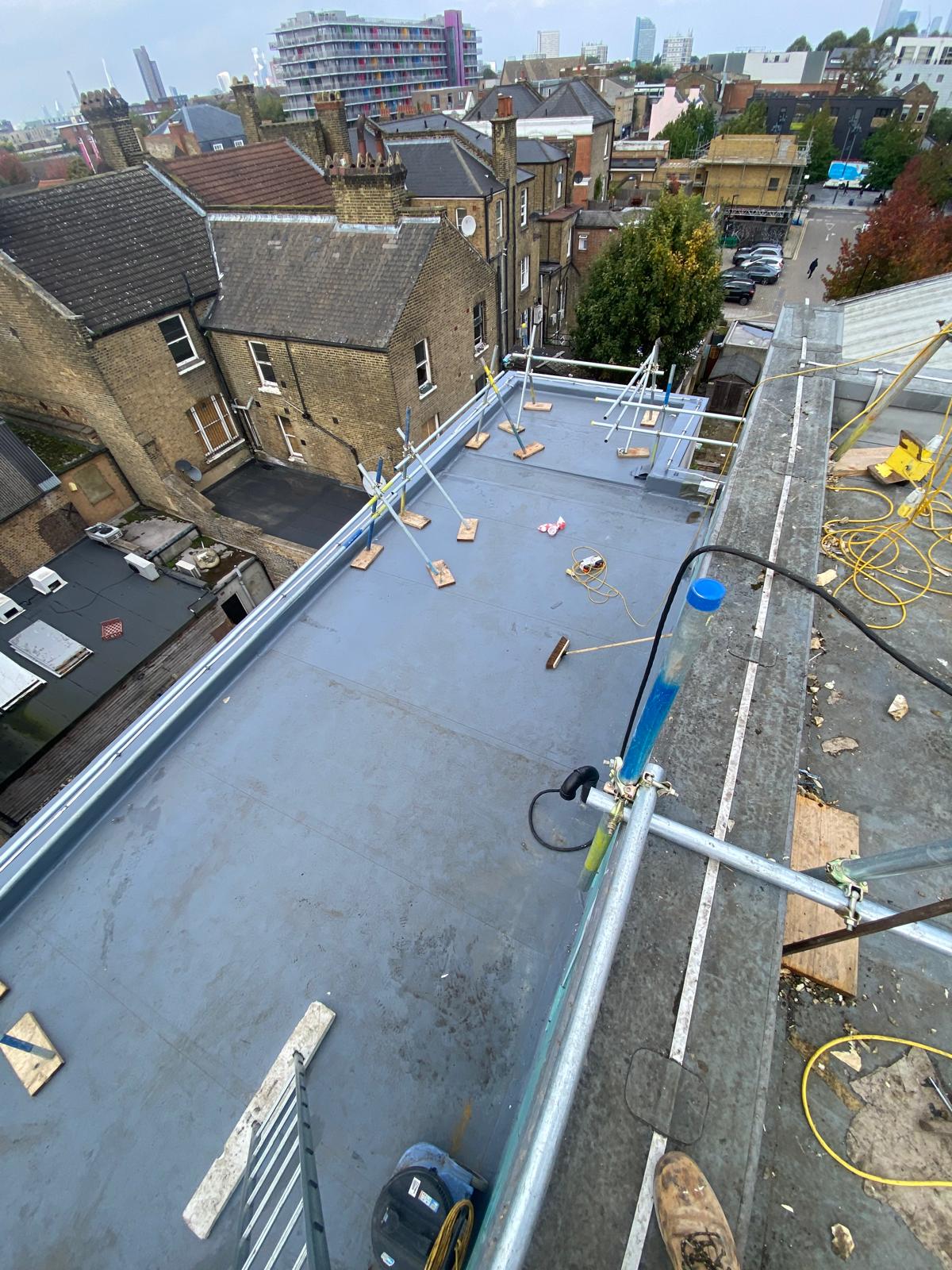 In October–November 2021, Watkins Flat Roofing was instructed by Prime Property Management to replace the failing roof at the Princess Louise Building in Deptford. The existing system had suffered consistent water ingress for over seven years, with widespread lap failures and water trapped within the build-up.
